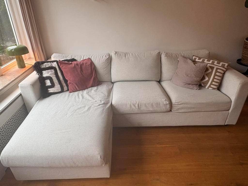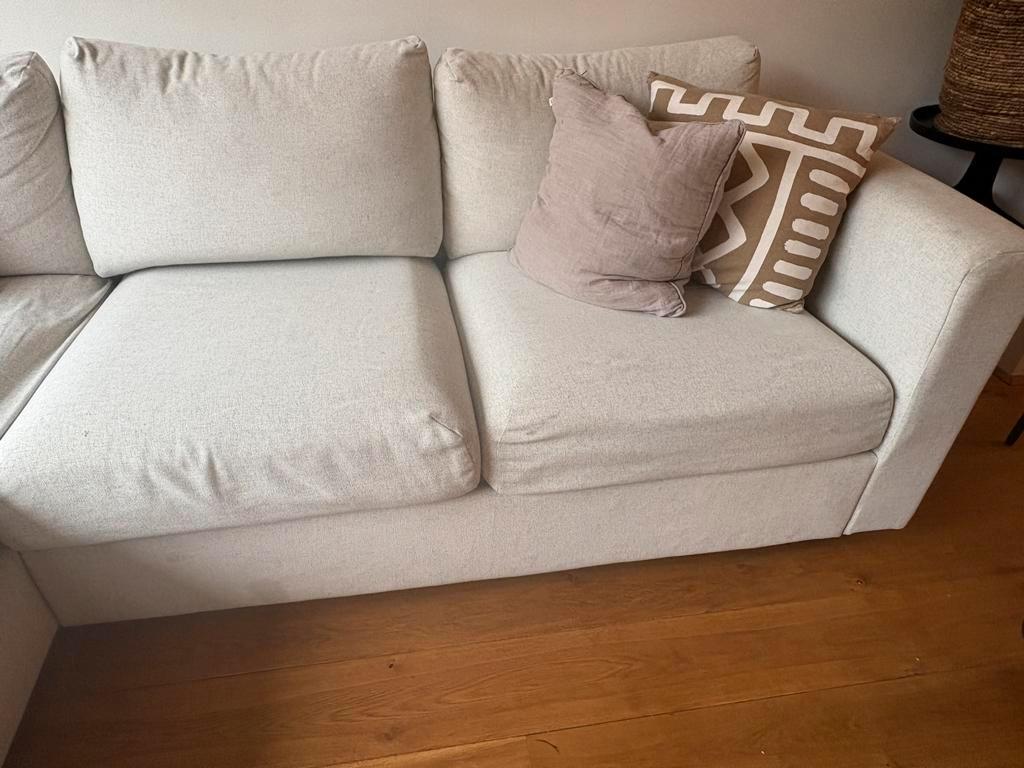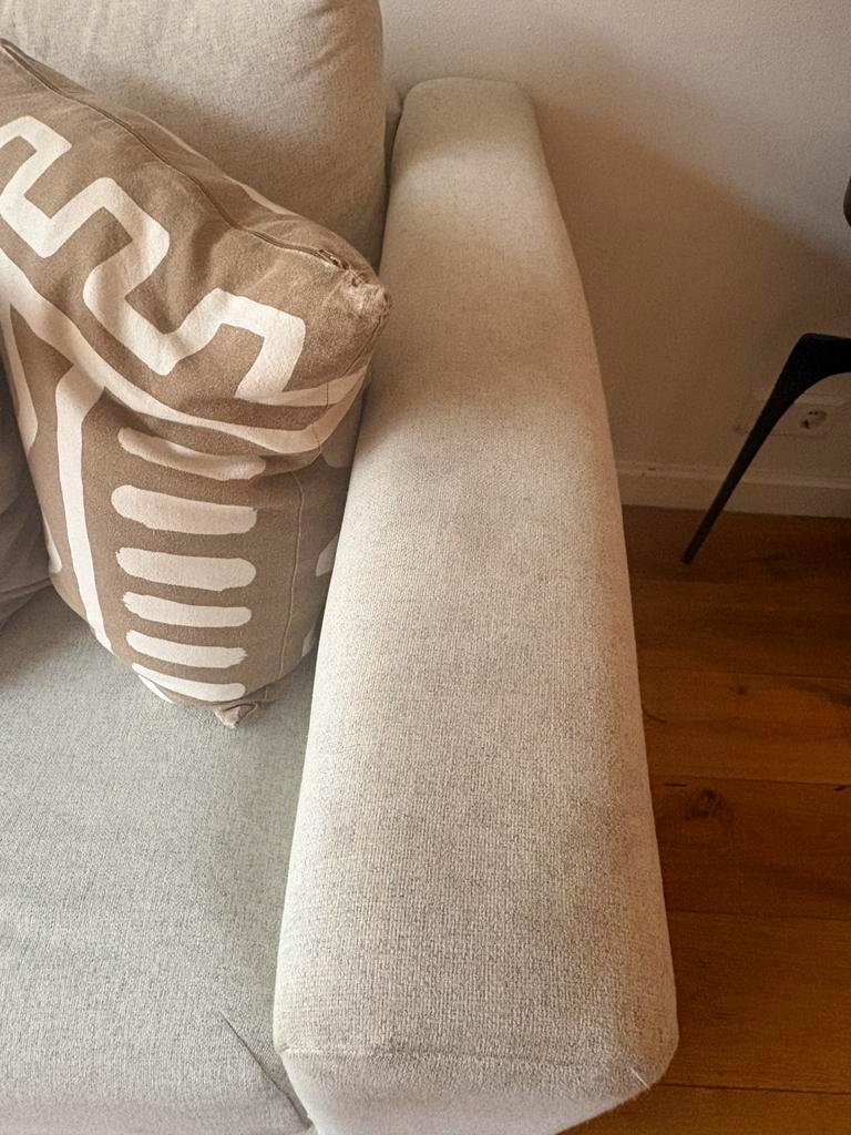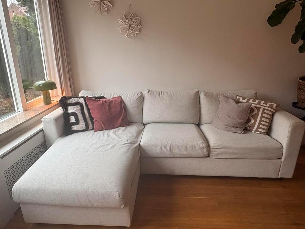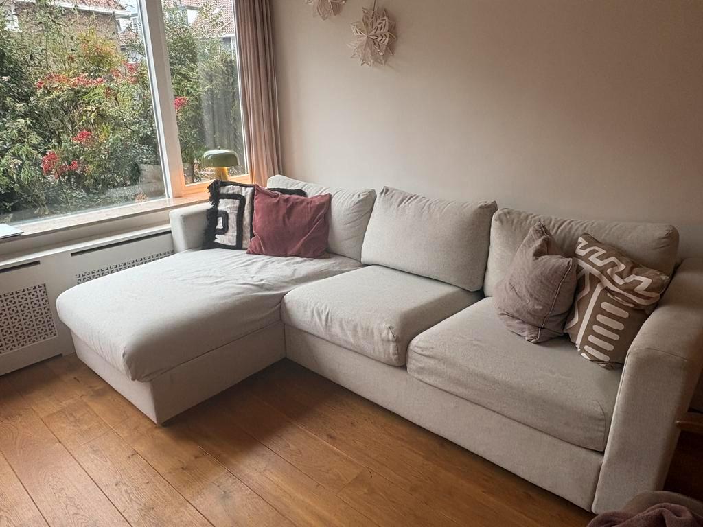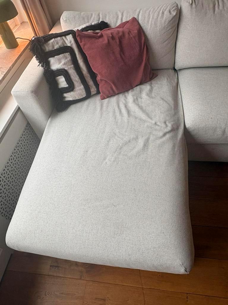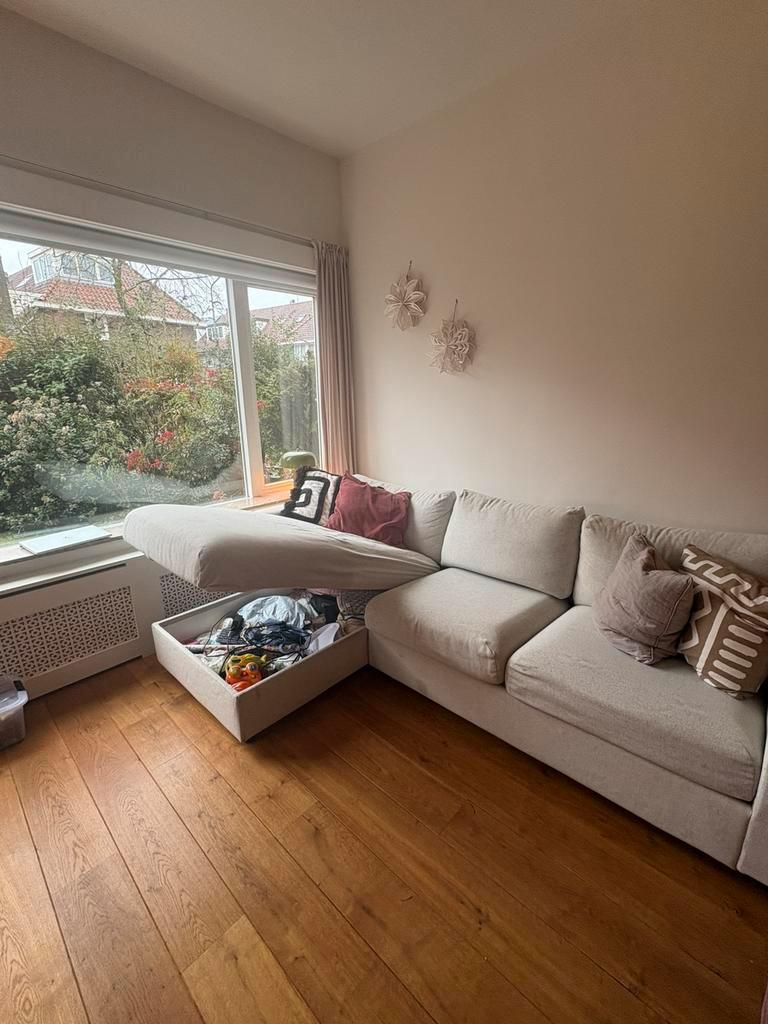 Mooie hoekbank ( hoek aan links) met opbergruimte onder het lange gedeelte de bank is wasbaar, alle kussens kunnen in de was en zelfs ook alle andere onderdelen, echter moet je dan wel de bank demonte