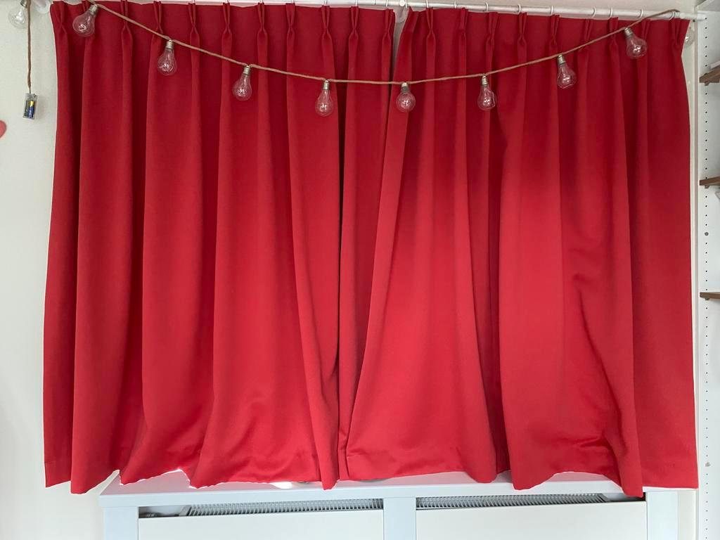 Mooie gordijnen te koop in mooie rood/roze kleur. Ze zijn ongeveer 148x110 per gordijn en hebben een dubbele plooi. Wie kunnen we er blij mee maken?