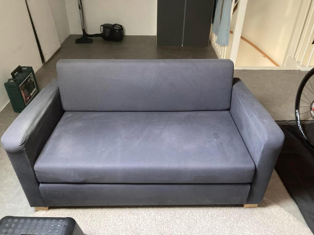 Ikea slaapbank, nog prima te gebruiken. De bank is verkleurd door de zon, maar verder in goede staat. Ideaal voor een studentenkamer of als extra bed voor gasten. Kan nog prima een tweede ronde mee!
