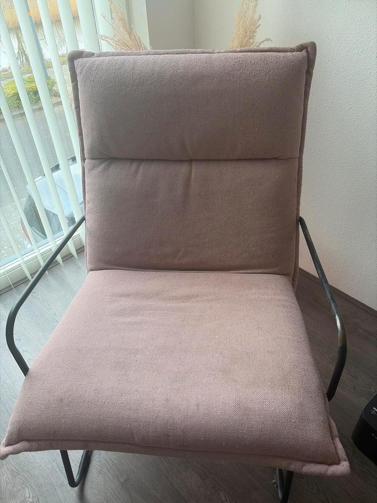 Gratis roze lounge stoel. De stoel is gebruikt en heeft een poetsbeurt nodig. Ideaal voor iemand die handig is en de stoel een tweede leven wil geven. Gratis af te halen!