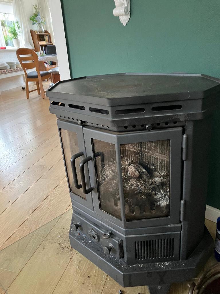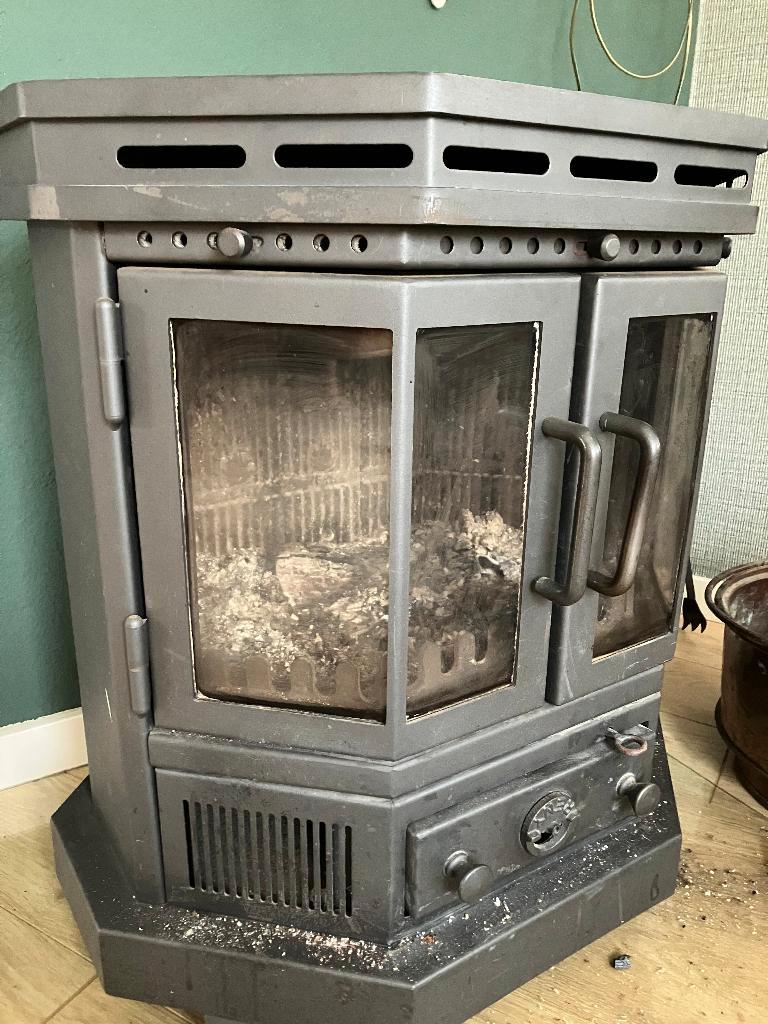 Aangeboden wegens verhuizing: houtkachel met ruitjes aan de voorkant en naar de zijkant toe, verwarmd nu een ruimte van 150m3. Circa 25 jaar oud, wordt regelmatig gebruikt.tegen elk aannemelijk bod.