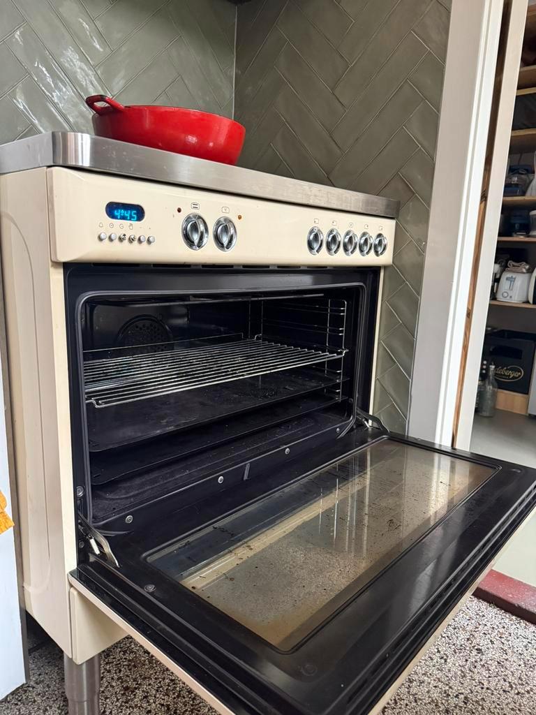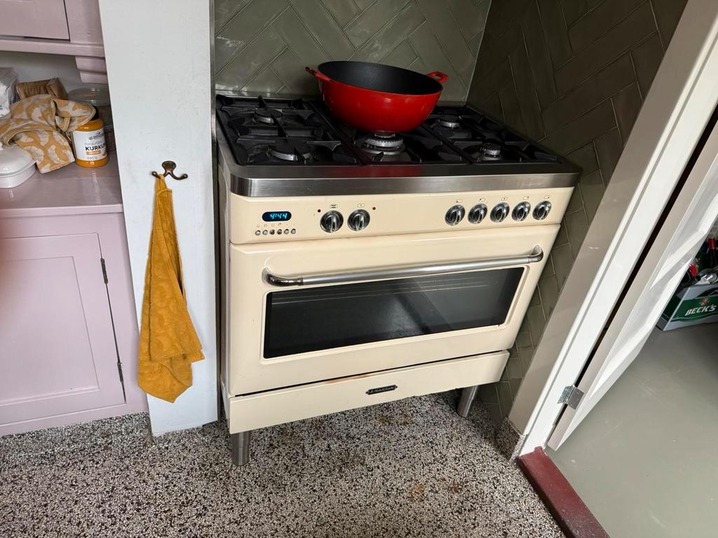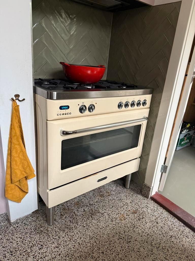 6-pits gasfornuis + elektrische oven. Fornuis werkt goed, oven heeft af en toe wat kuren, volgens mij elektra gerelateerd. Heeft gebruiksporen, verder netjes.