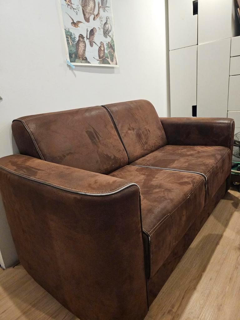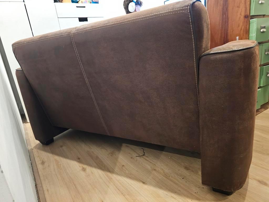 Gratis 2 (2,5) zits bankje. Bruin leer-look. Zit nog heerlijk en prima voor bijv. Chillruimte kids. Het gebruik is te zien maar toch zeker nog niet afgeschreven. 160 Breed, zo''n 85 diep. Direct af
