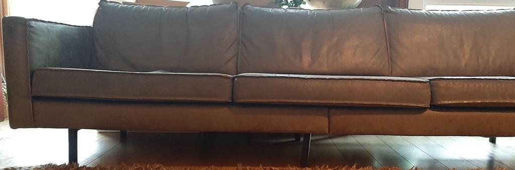 Comfortabele ruime 3 zitsbank . Gemaakt van gerecycled leer . Merk be pure . Gaat weg ivm kleiner wonen . In 2 delen vervoerbaar . Graag voor de 18 e ophalen .