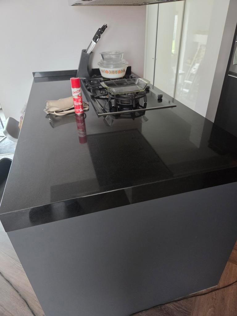 Keukenblad met afmeting: eiland: 184 cm x 100cm wasbak gedeelte: 135cm x 65 cm moet uiterlijk 21.2. Weg!!!