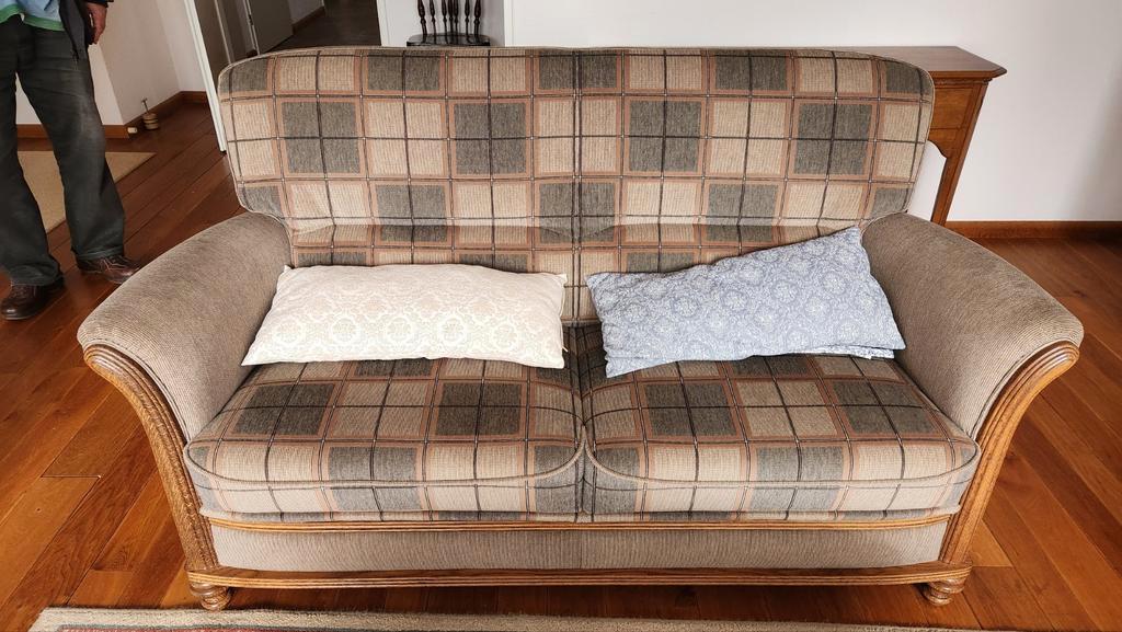 Prachtig eikenhouten bankstel met twee bijpassende fauteuils. De set is zo goed als nieuw en verkeert in uitstekende staat. Stevig en comfortabel, perfect voor elk interieur. Een donatie voor het diab