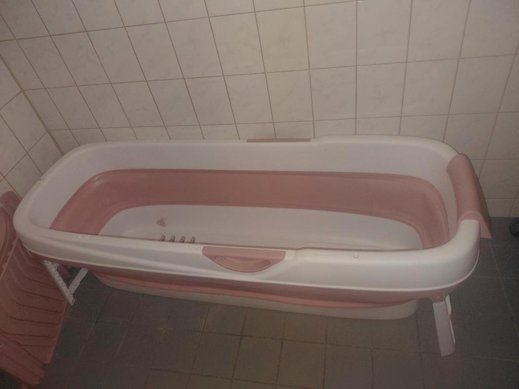 Gratis opvouwbaar bad, met een lek. We hebben een nieuwe onder garantie ontvangen, dus we hopen iemand blij te maken met deze. Met een washandje op de plek waar het loslaat, kan je er nog prima in bad