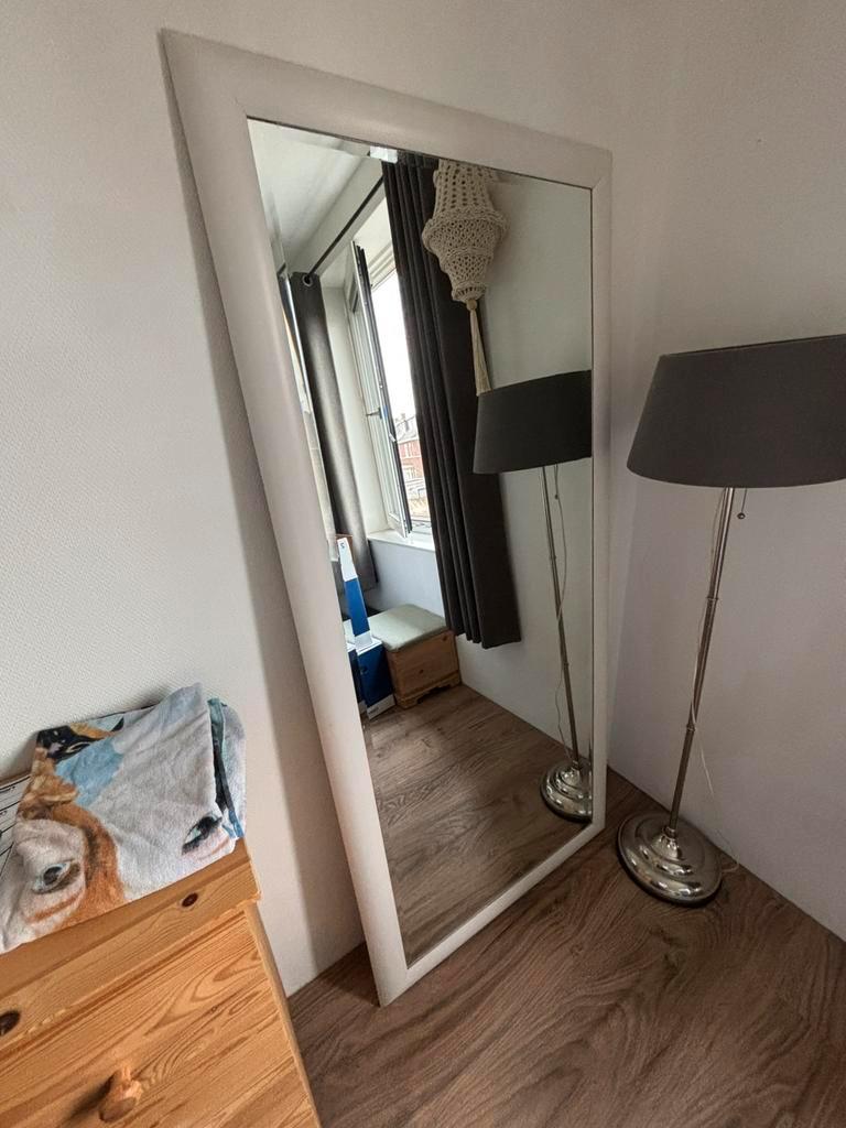 Gratis op te halen, grote spiegel van 185 x 84 cm. De lijst is van hout. Ik heb hem wit geverfd maar je kunt hem ook weer opschuren.