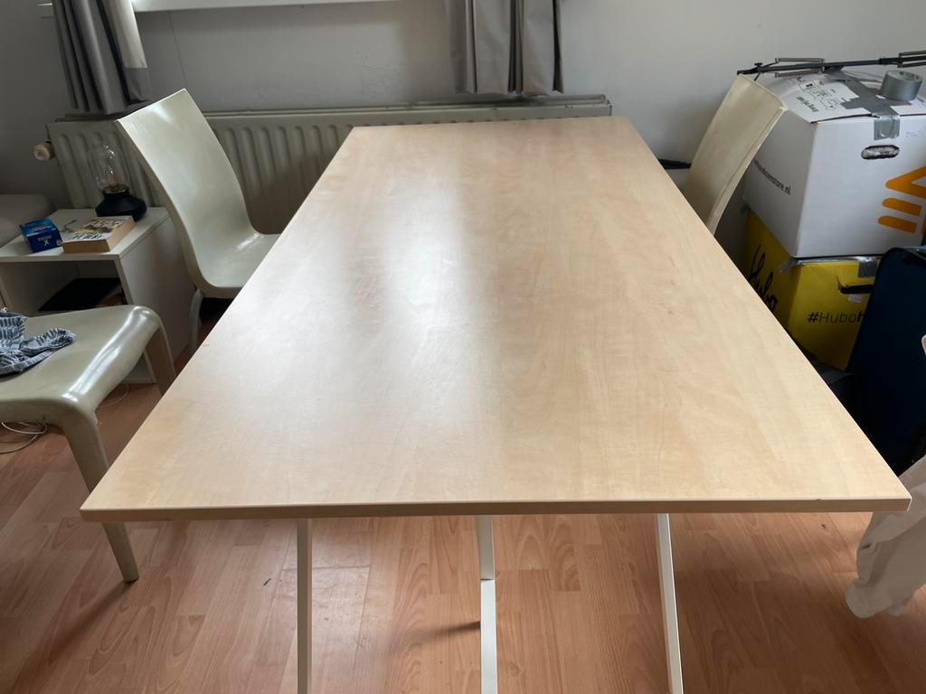 I.v.m. Een verhuizing doe ik mijn houtkleurige tafelblad/bureaublad van 160x80 cm (zonder de poten) weg. Het blad heeft een dikte van 2 cm en is daardoor ideaal voor het maken van een bureau of tafel.
