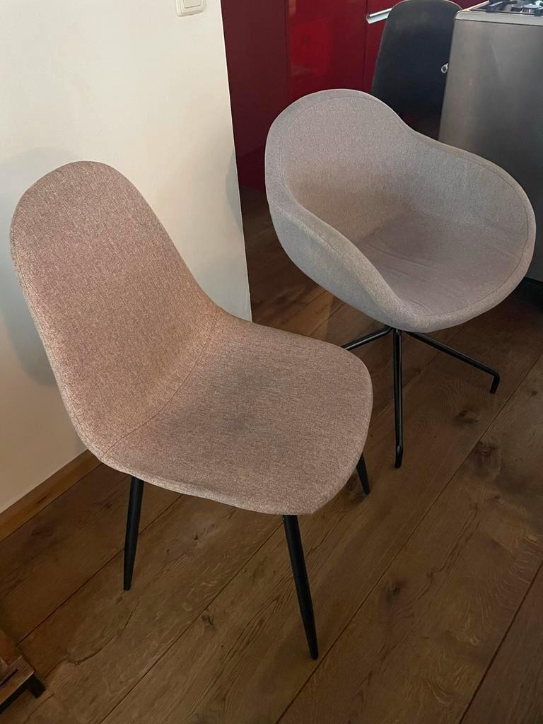 Set van twee gebruikte eetkamerstoelen. De stoelen zijn in goede staat, maar vertonen gebruikssporen. Ideaal voor een studentenkamer of als extra stoelen voor de eetkamer.