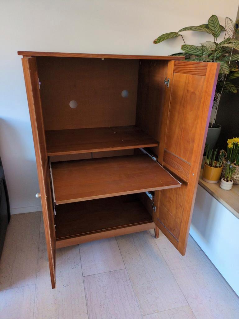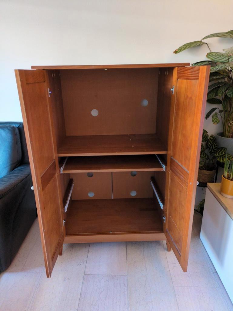 Computer kast in gebruikte, maar nette staat. Dit weekend gratis op te halen. Grenen hout. Afmetingen: 87 cm breed, 59,5 cm diep en 137,5 cm hoog. De kast kan gedemonteerd worden. Er zit een extra uit