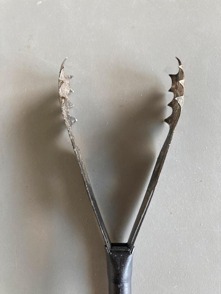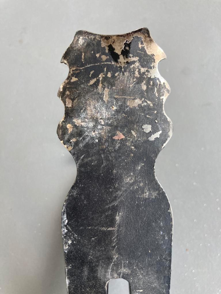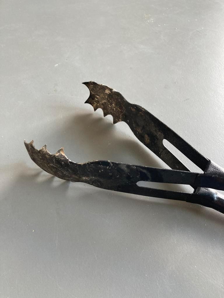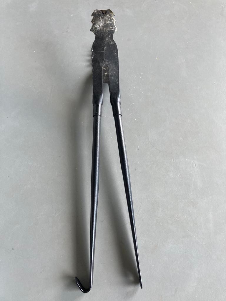 Zie foto,s. Verf is er wat deels gegaan bij het knijpdeel. We hadden hem voor de kachel maar is meer voor openhaard