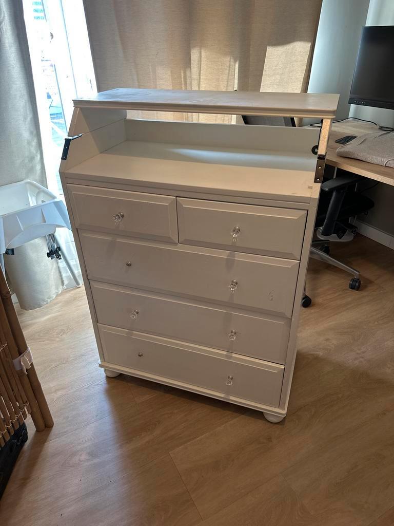 Witte commode met meerdere lades. Ideaal voor opbergen van kleding of andere spullen. In goede staat. Gratis ophalen