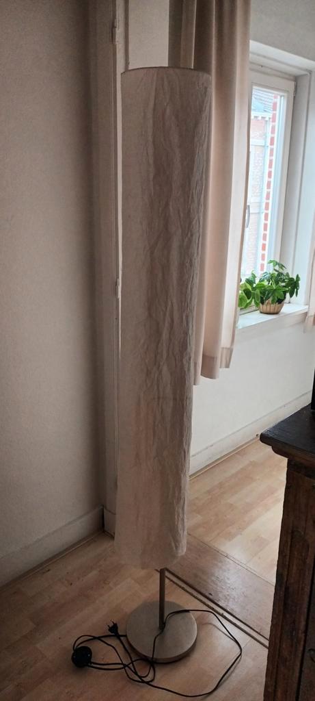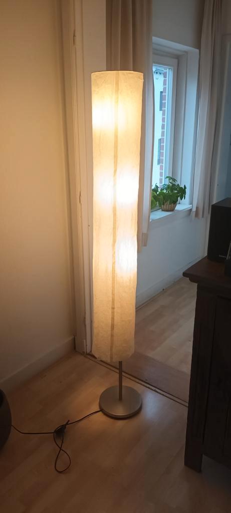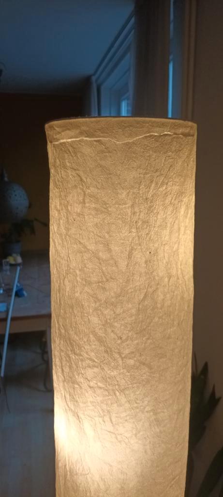 Goed werkende lamp, kap beschadigd zoals te zien op foto 3 en 4. 1,70M hoog. Mag gratis weg.