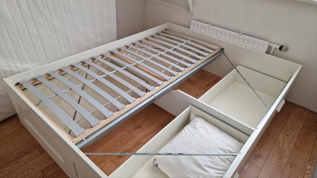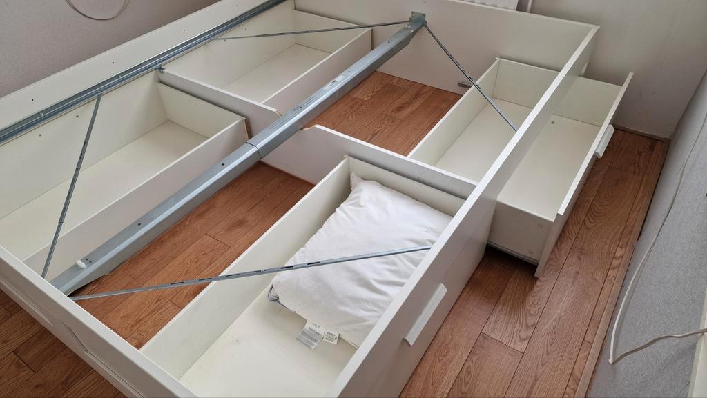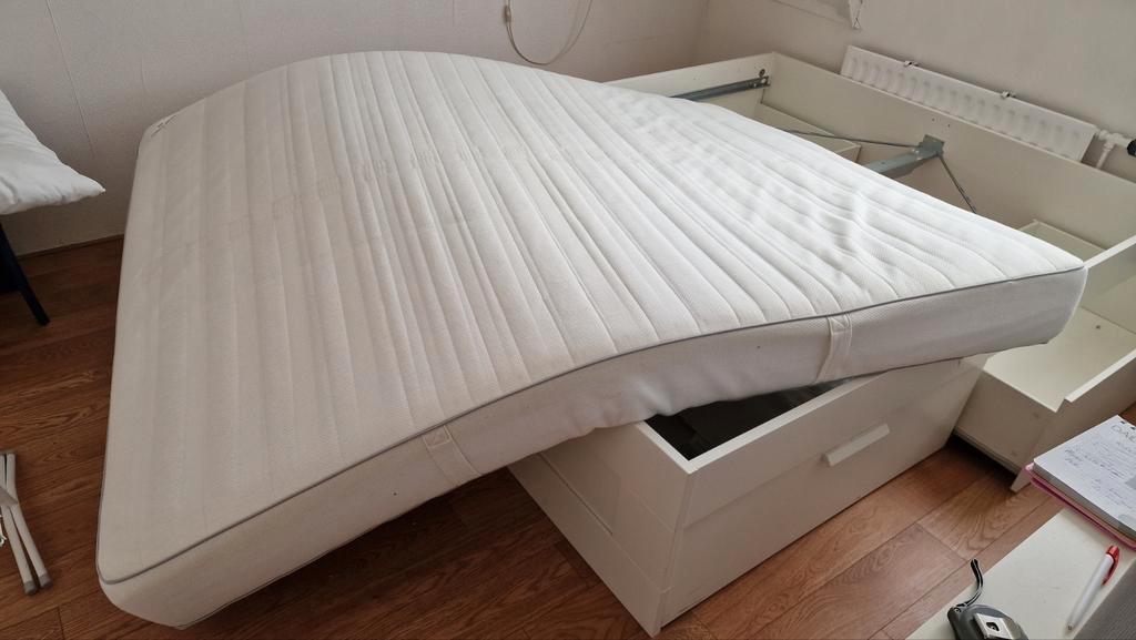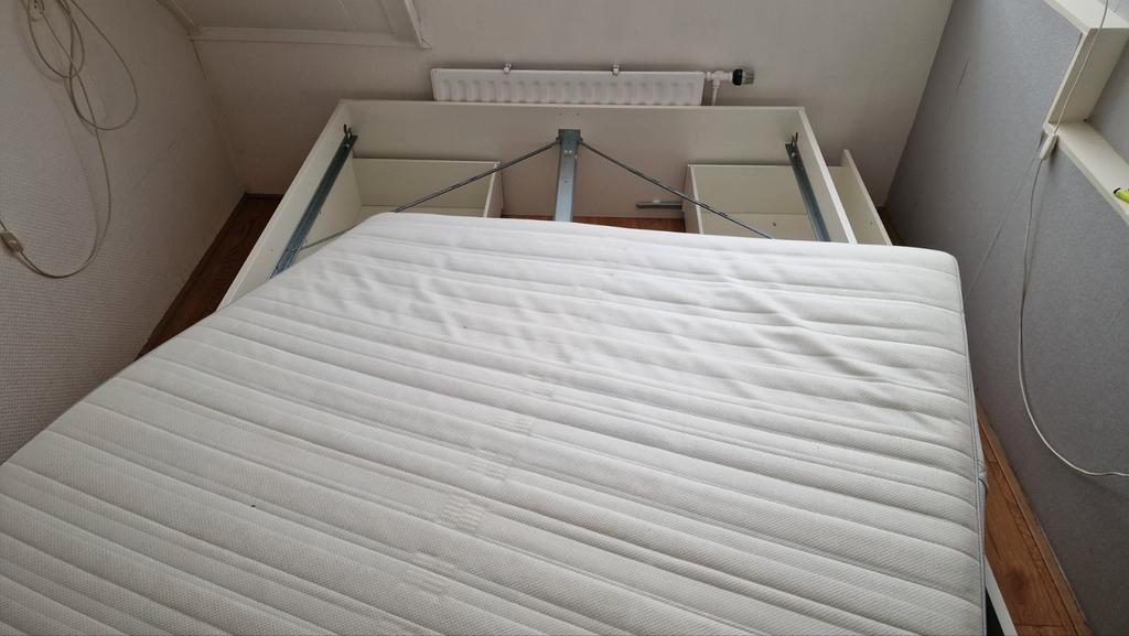 Duiven, gelderland. Postcode 6922. Compleet tweepersoons ikea bed (200x160cm) inclusief matras, twee lattenbodems en vier ruime lades. De onderbouw en lattenbodems zijn in zeer goede staat. Matrasmaat