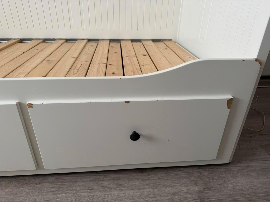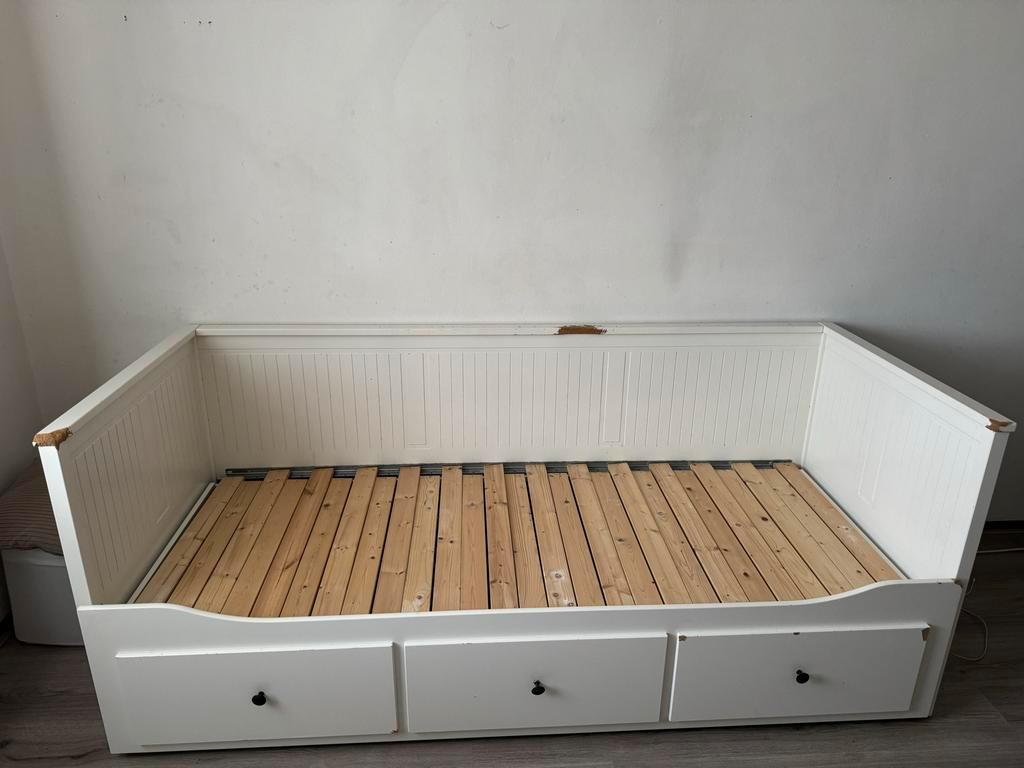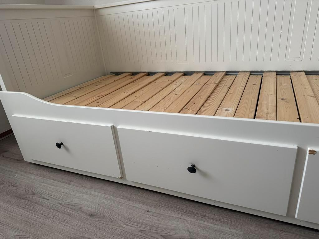 Gebruikt ikea bed, uit te schuiven van 80x200 naar 160x200. Het bed is al uit elkaar gehaald, makkelijk te vervoeren. Gebruikssporen aanwezig. Gratis