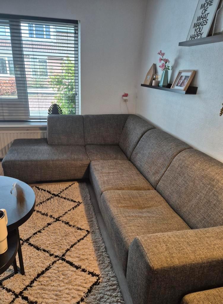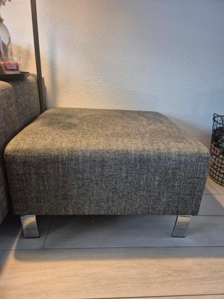 Hoekbank en hocker ophalen, alles samen ophalen, liefst 14 of 15 februari. Bij 1 zitplek is de veer eronder geknapt. De handige klusser kan dit vast repareren. Voor de rest is de bank in goede staat!