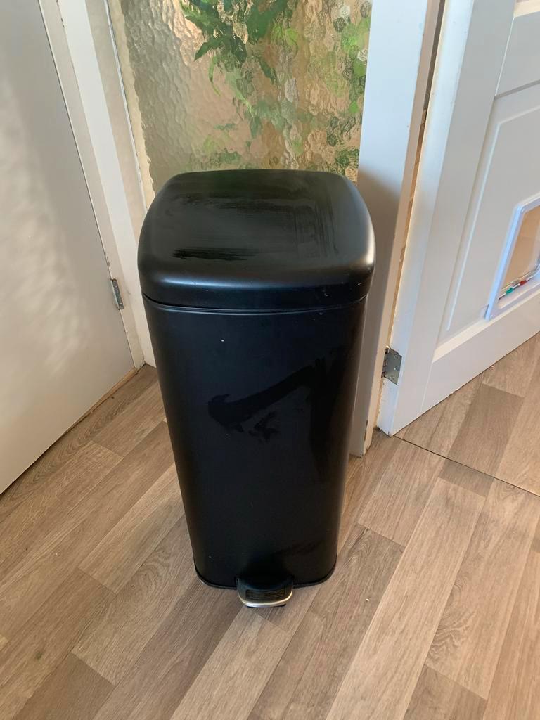 Zwarte pedaalemmer 30 liter 66 cm hoog gaat soms niet gelijk open met pedaal daarom mag hij gratis opgehaald worden
