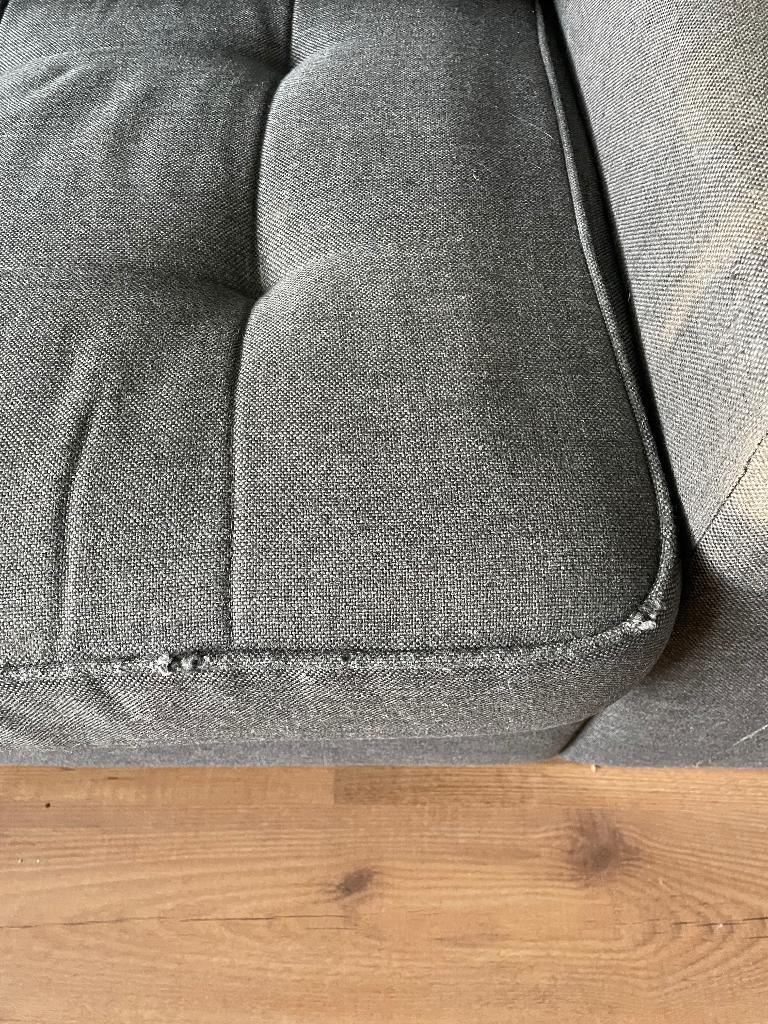 Gratis af te halen. Is op de hoek beschadigd en niet doorgezakt. Bank moet gereinigd worden. Kussenhoezen zijn wasbaar in de wasmachine. Bij geen reacries gaat de bank dinsdag naar de stort.