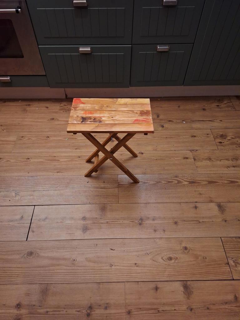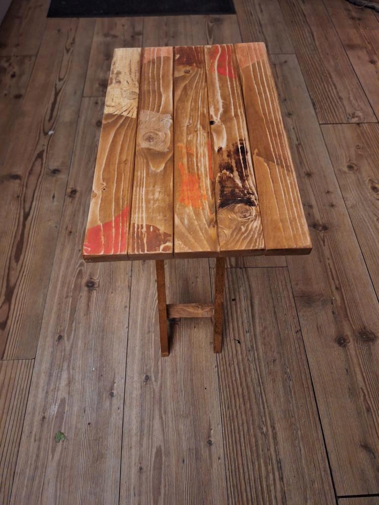 Klein bijzettafeltje. Hoogte 45, breedte 24, lengte 38 cm. Uniek en eigen gemaakt ontwerp. Gratis.