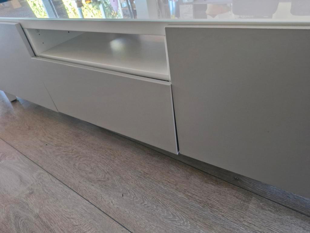 Ikea besta tv-meubel met lichtgrijze deurtjes/lade. Enkele beschadigingen en scharnieren werken niet meer helemaal naar behoren. Vandaar gratis af te halen (door de handige doe-het-zelver?!). Voor afm