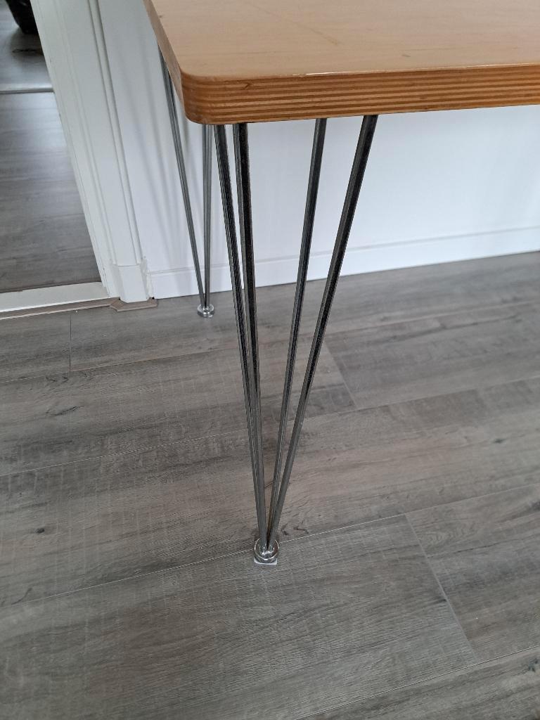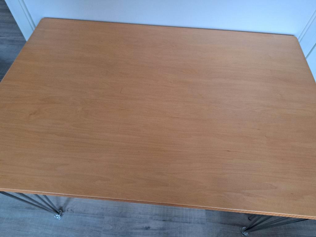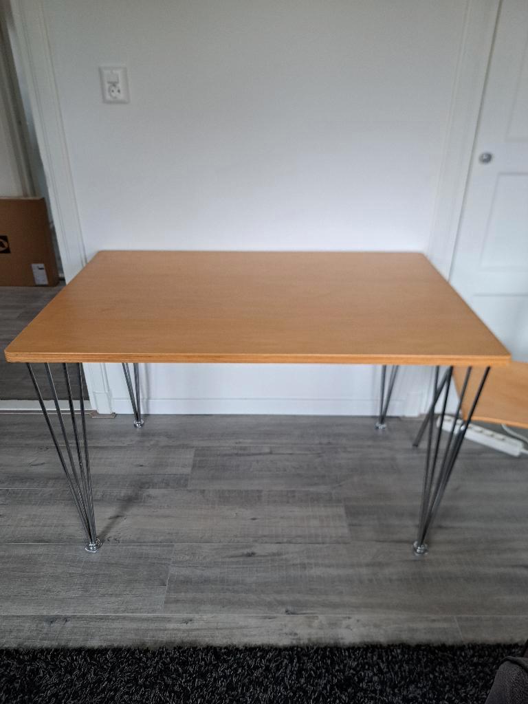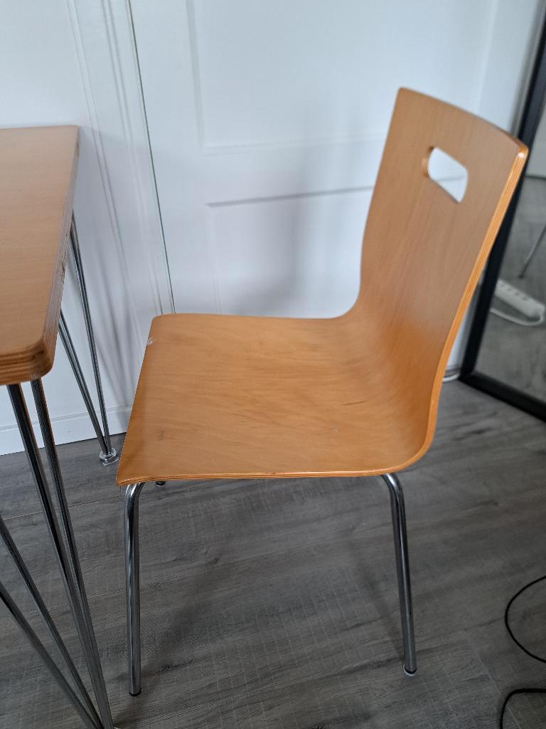 gratis ophalen in enschede noord. Tafel / eettafel met stoel. Leuke tafelpoten. Tafelblad is 120 x 80 poten zijn er al af, schroefjes krijg je erbij. Zie foto. Makkelijk te monteren. Geen huisdieren