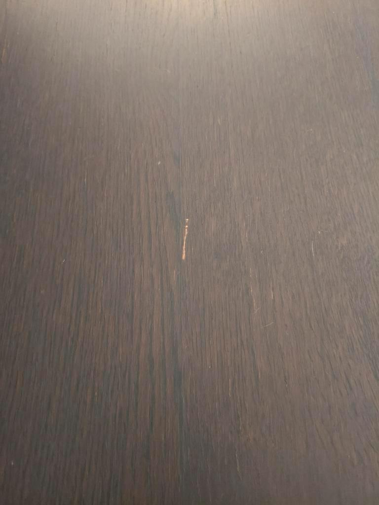 Mooie, stevige eettafel. De tafel is gemaakt van massief hout en biedt plaats aan vier tot 6 personen. De tafel heeft een rechthoekig blad en is in gebruikte staat. Er zijn wat kleine beschadigingen,