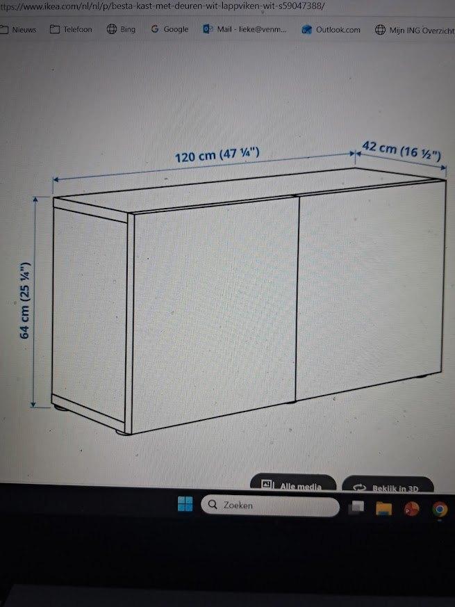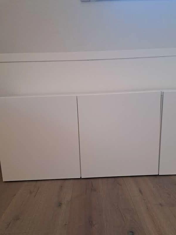 Gratis op te halen; twee witte ikea ''besta'' kasten. Per kast; breedte x hoogte x diepte = 120 x 64 x 42 cm. Met deurtjes en vier glasplaatjes. Onbeschadigd maar zoals op foto 4 te zien moeten