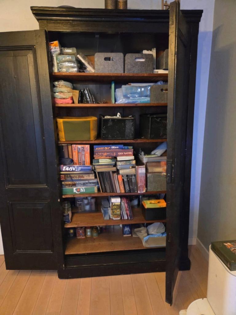 Grote zwarte kast gratis op te halen. Moet vandaag (15-02) weg. De kast heeft veel opbergruimte en is ideaal voor bijvoorbeeld boeken of kleding. Afmetingen zijn 230x130x44 alleen vandaag gratis af te
