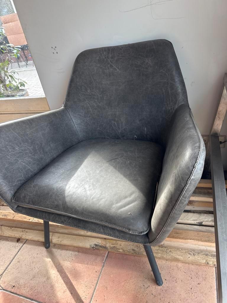 Mooie zuiver kuipstoel in grijze kleur. De stoel is comfortabel en in goede staat. Perfect voor in de woonkamer, eetkamer of studeerkamer. Het materiaal is kunstleer. De stoel heeft een moderne uitstr