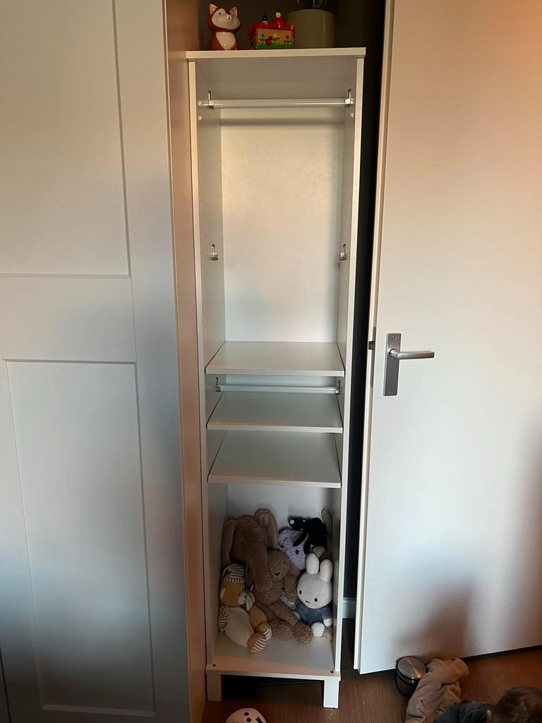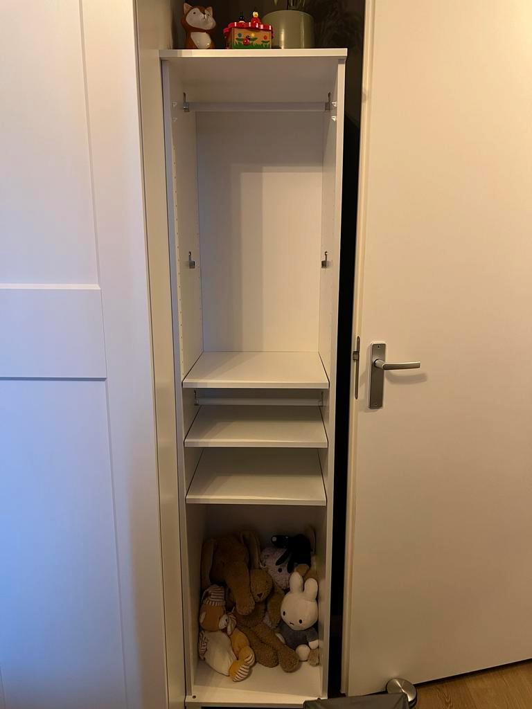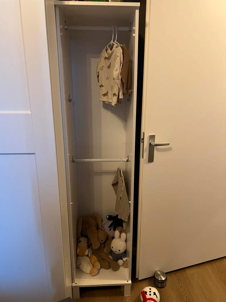 Kast die naar eigen wens is in te delen. Wij hebben er kledingroedes in gemaakt en gebruikt als kledingkast voor onze zoon. Deze roedes kunnen er weer uitgehaald worden, waarna er planken in geplaatst
