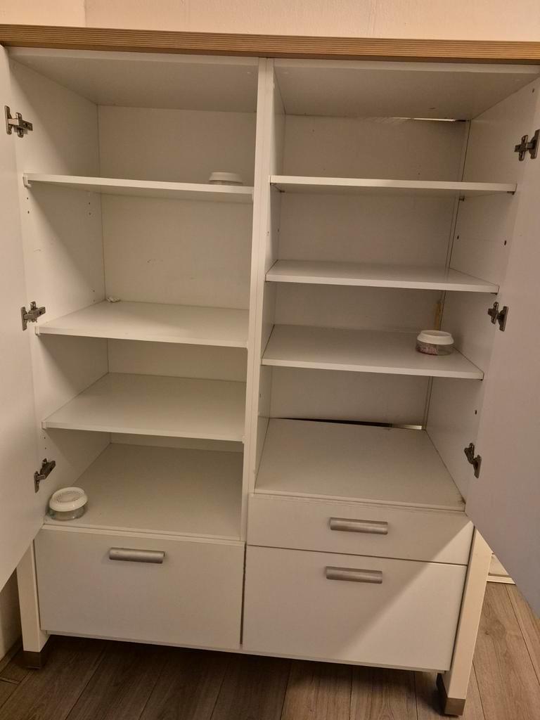 Witte kast met deuren en lades