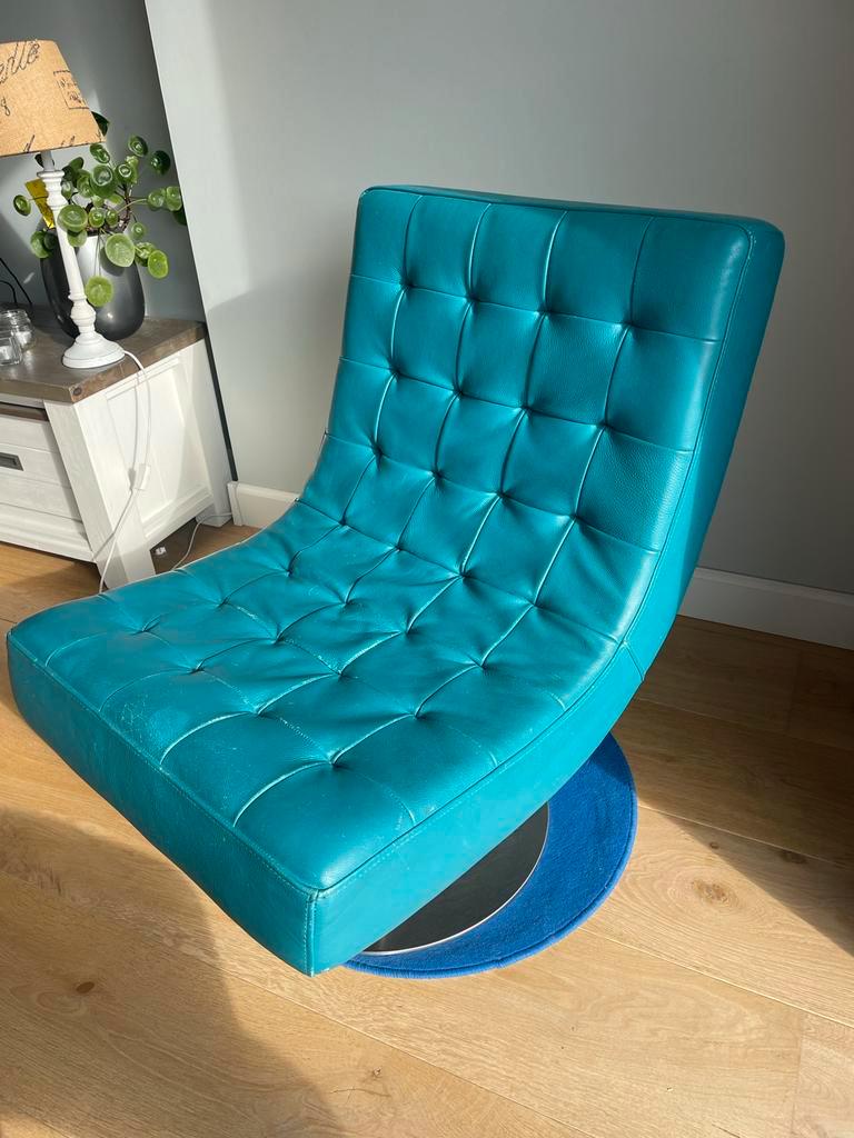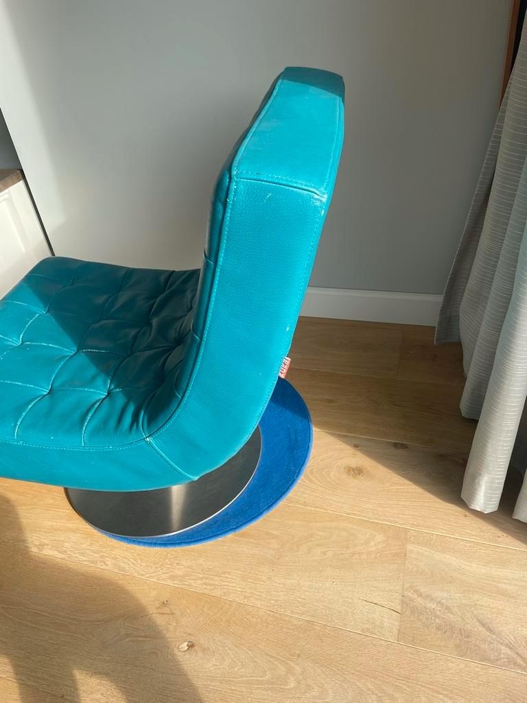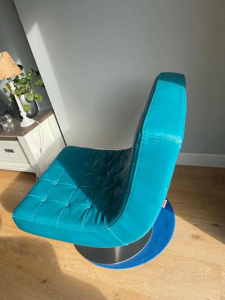 Comfortabele draai fauteuil met een uniek design. Perfect voor in de woonkamer of studeerkamer. De fauteuil is in goede staat en biedt een heerlijke zitplek om te ontspannen. Alleen ophalen
