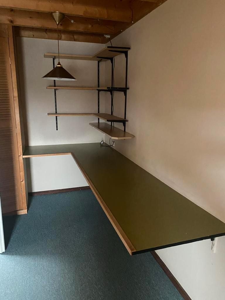 Groen bureaublad, gemaakt uit één geheel. Ideaal voor een strak en modern interieur. Afmetingen zijn te zien op de foto. Het blad is in goede staat en klaar voor gebruik. Reeds gedemonteerd.