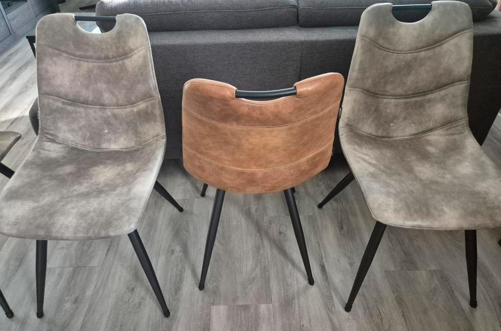 6 eetkamer stoelen cognac grijs groen