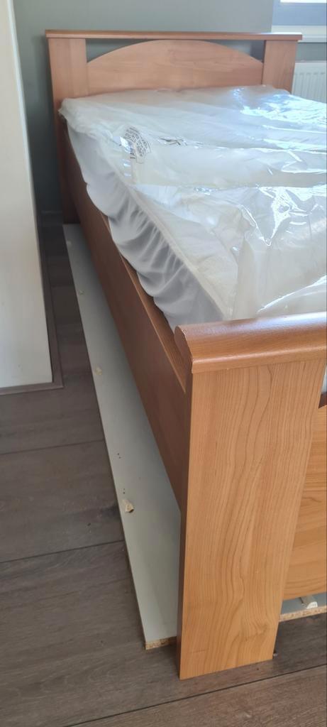 Een mooi eenpersoonsbed met de afmetingen 90 cm breed en 200 cm lang. Ideaal voor een kinderkamer of logeerkamer. Het bed is in goede staat en kan direct gebruikt worden. Exclusief matras.