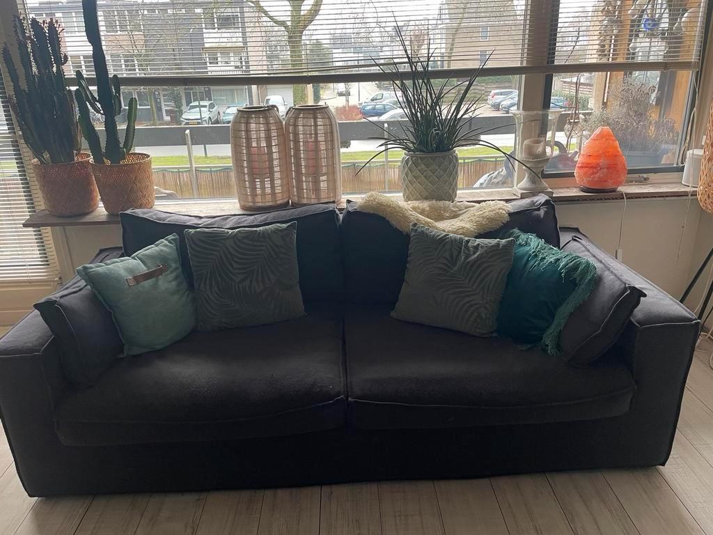 Donkergrijse lifestyle bank moet zo snel mogelijk weg 228 breedt 95 diep 56 hoog 39 zit hoogte 65 zit diepte
