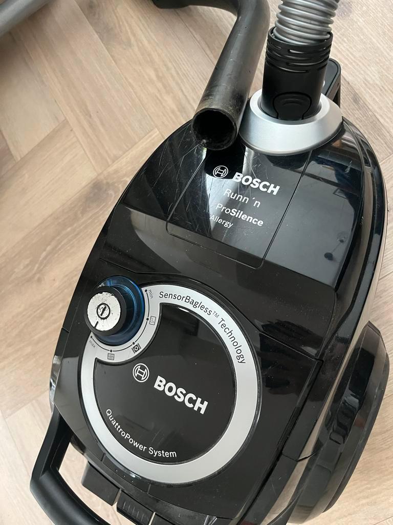 Bosch stofzuiger die helaas niet meer werkt. Wellicht geschikt voor onderdelen of voor iemand die handig is en hem kan repareren. Model is runn ''n prosilence allergy.