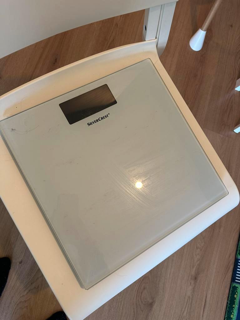 Een gebruikte personenweegschaal. Er moet een nieuwe batterij in gedaan worden. Verder in goede staat.