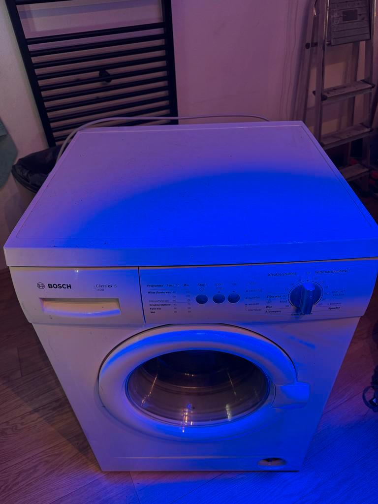Bosch classixx 5 wasmachine, helaas defect. Gaat niet meer aan. Wellicht geschikt voor onderdelen of reparatie. Model is een voorlader. Inhoud is tussen 6 en 8 kg.