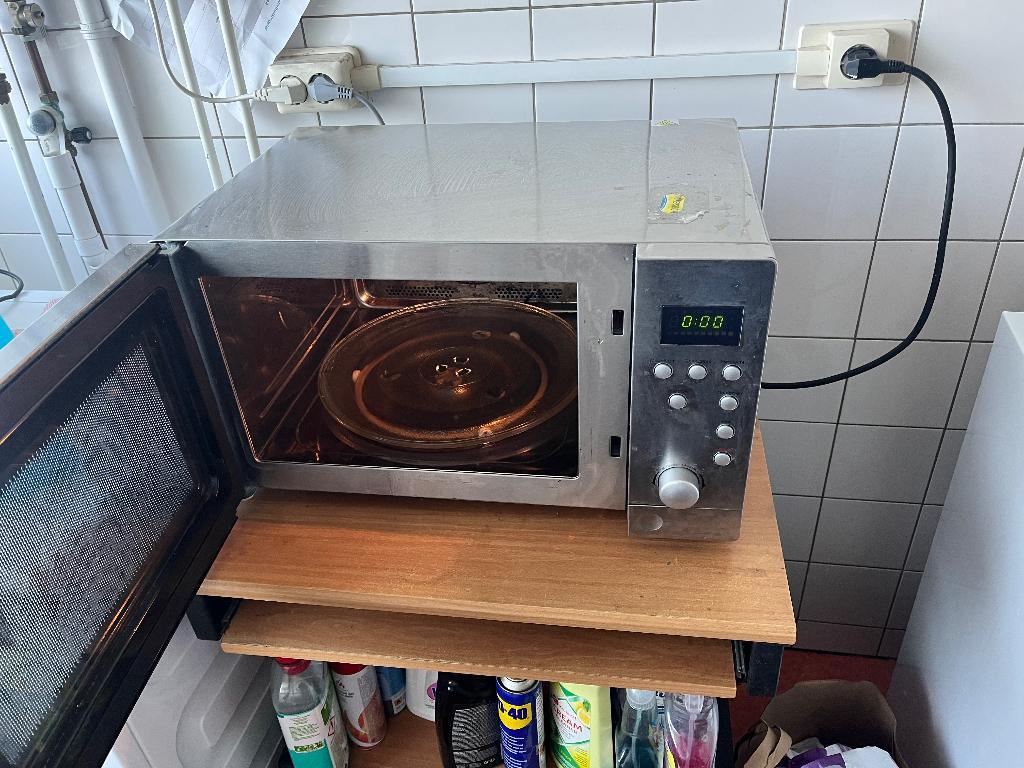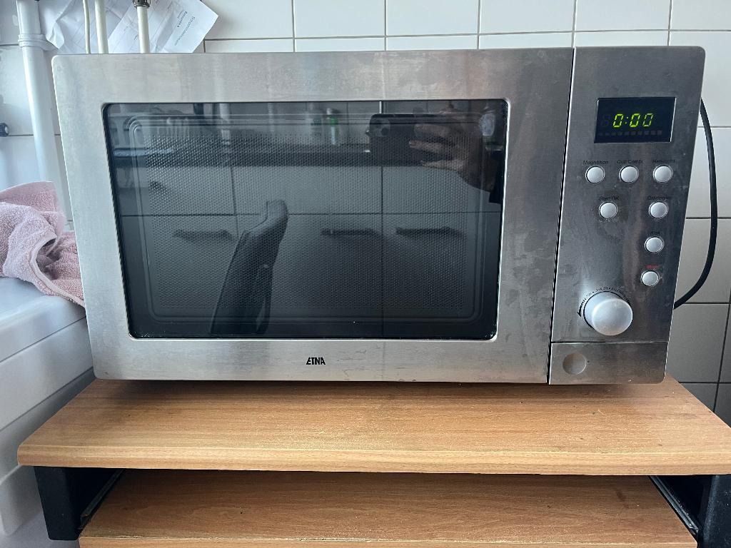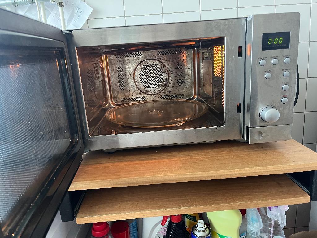 Goed werkende magnetron met heteluchtfunctie. Glazen draai plateau.