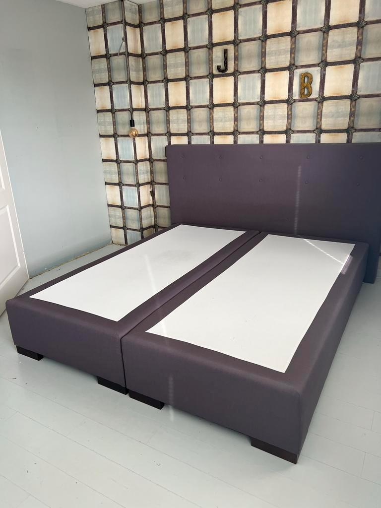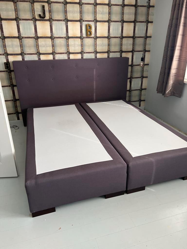 Twee boxsprings van 90x200 cm, in goede staat, schoon en niet beschadigd. Inclusief hoofdbord van 200 cm breed, 110 cm hoog en 16 cm dik. Gratis af te halen vóór donderdag 19 februari a.s.