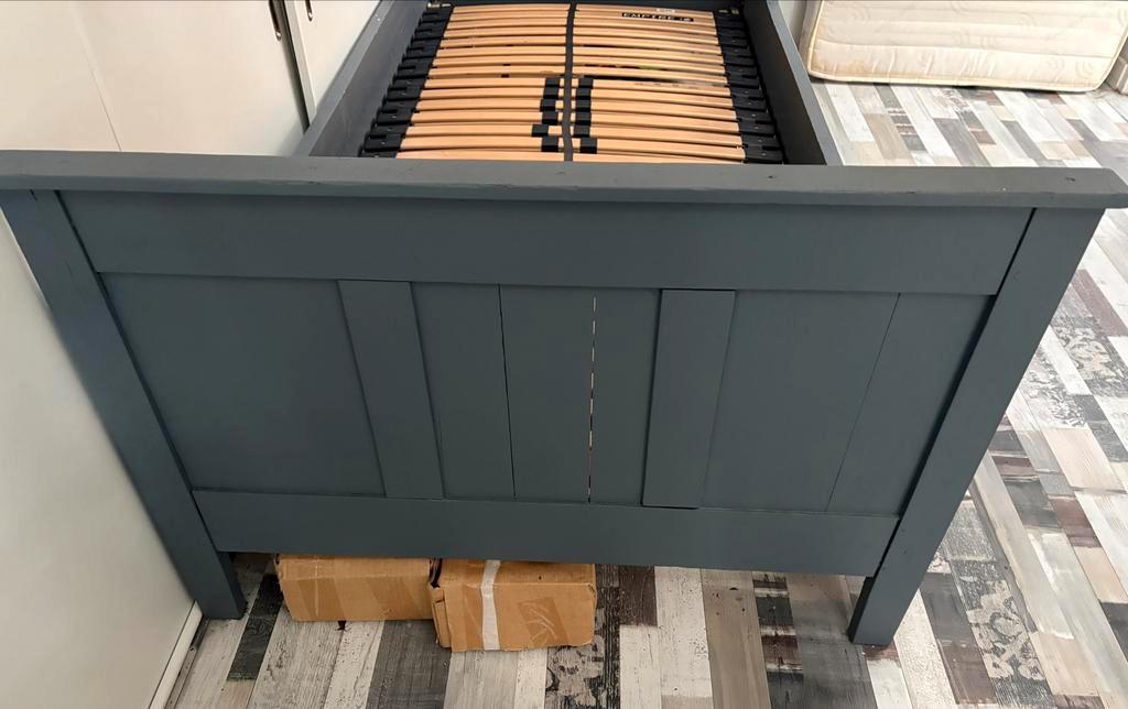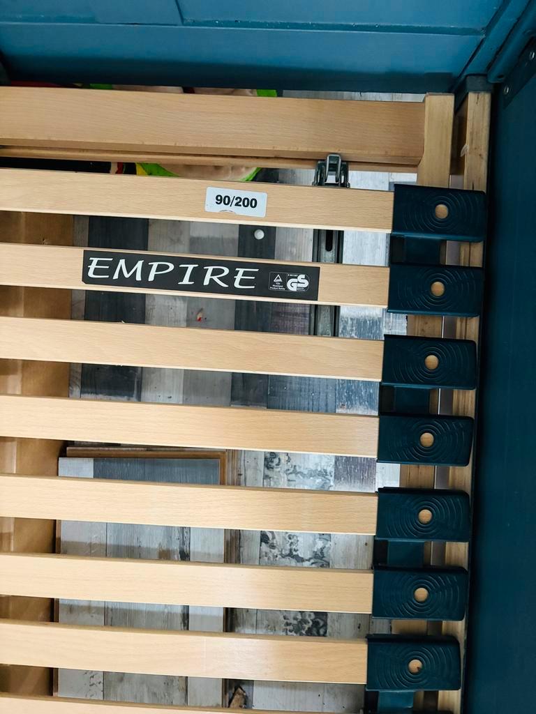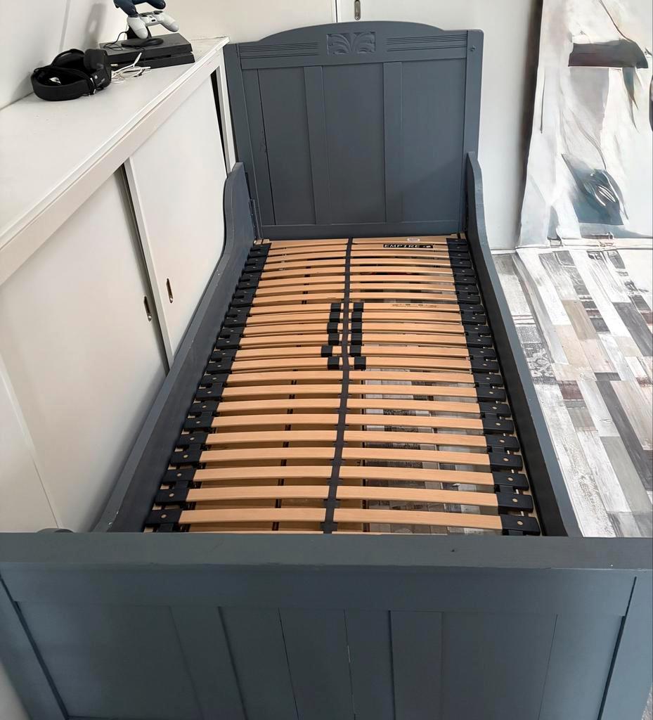 Een eenpersoonsbed met verstelbare lattenbodem. De afmetingen zijn 90x200 cm. Er is een matras aanwezig, maar deze is niet meer schoon en wordt aangeraden te vervangen. Het bed is gebruikt, maar nog i