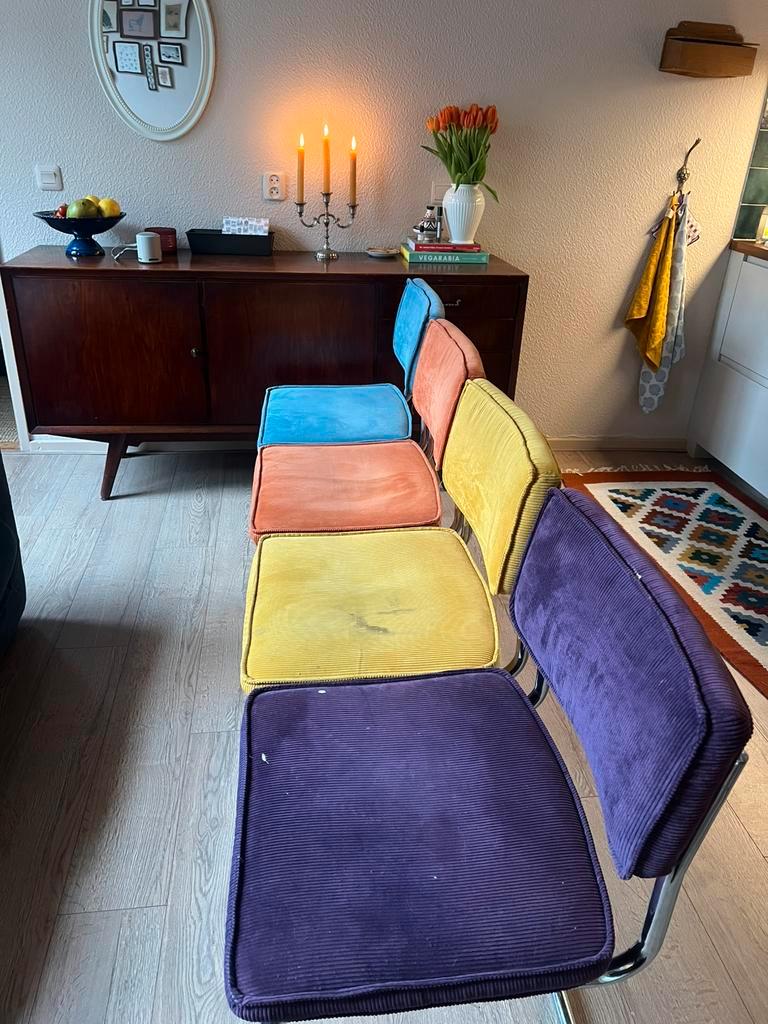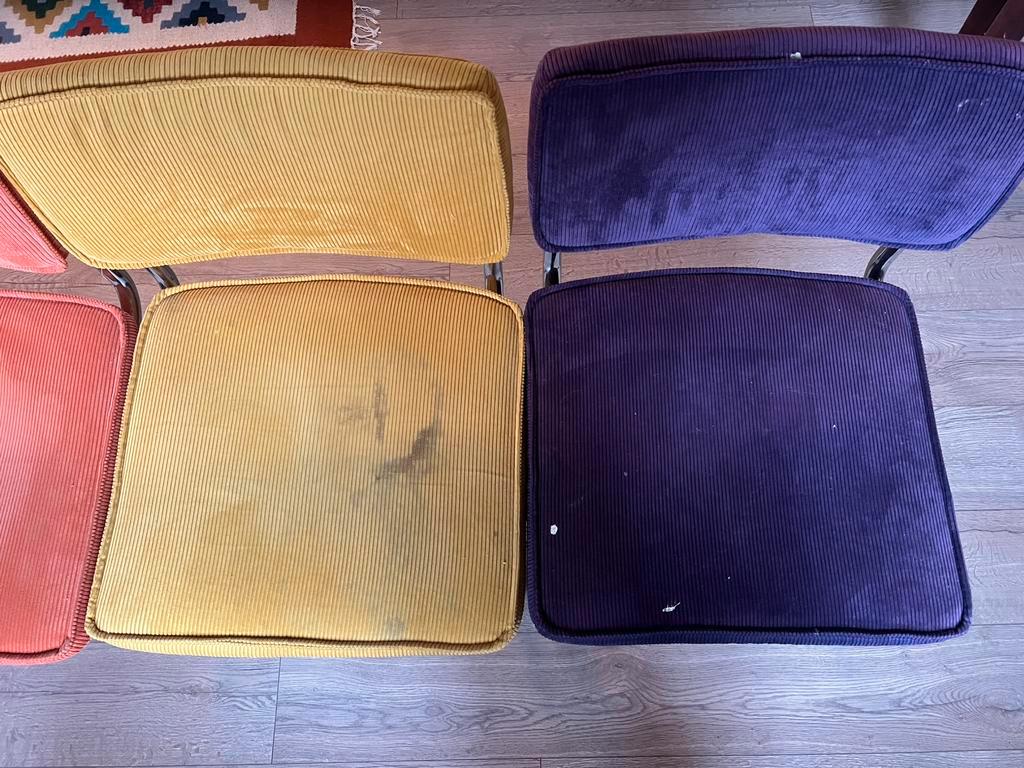 Gratis af te halen uit groningen. Vier eetkamerstoelen die gebruikt zijn. Her en der een vlek zichtbaar.