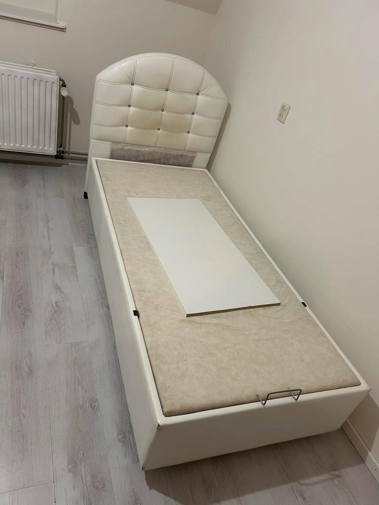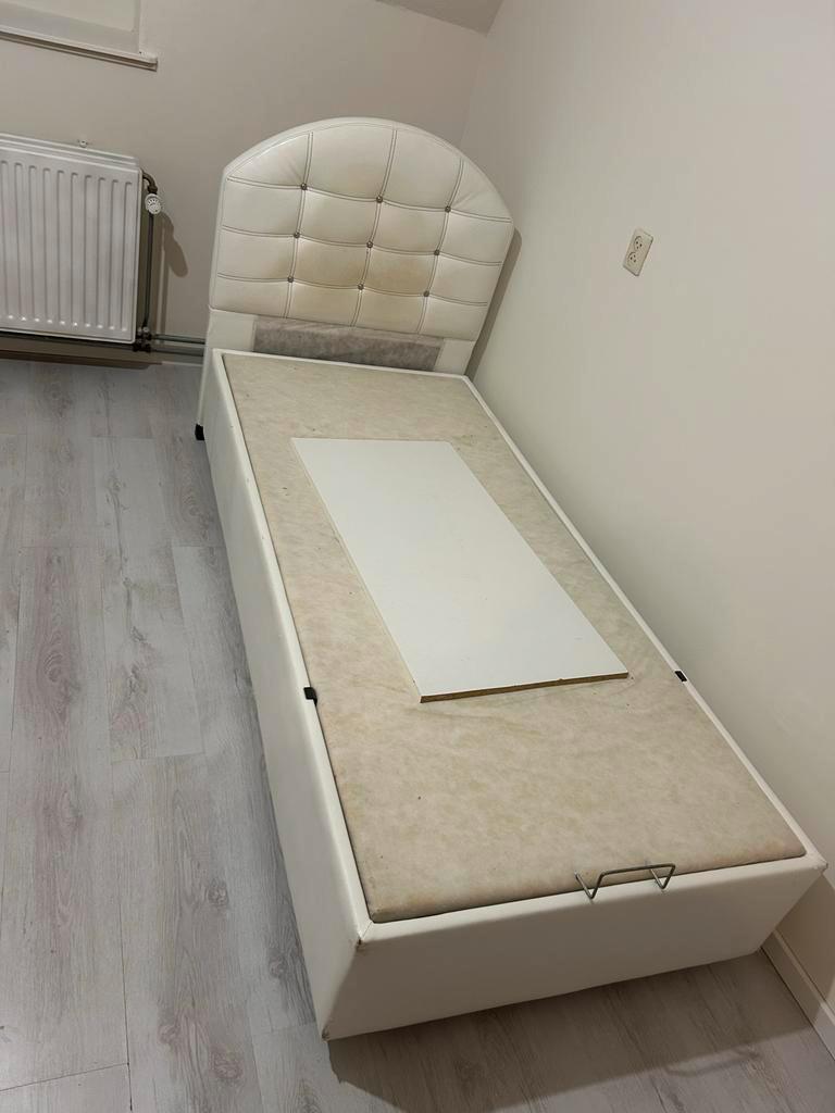 Een comfortabel eenpersoonsbed van 90x200 cm, inclusief matras en handige opbergruimte. Ideaal voor kleine kamers of studentenkamers. Het bed is in goede staat en klaar voor gebruik.