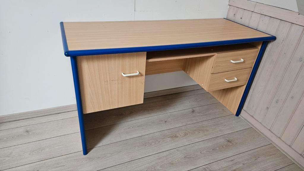 Het bureau is in gebruikte staat, maar nog steeds functioneel en klaar voor gebruik. Met 2 lades en 1 kast voor opslag. Hoogte: 76 cm breedte: 144 cm diepte: 56 cm