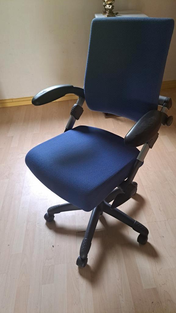 Gebruikte blauwe bureaustoel, in hoogte verstelbaar. Gratis op te halen in weelde, belgië, net over de grens bij tilburg.