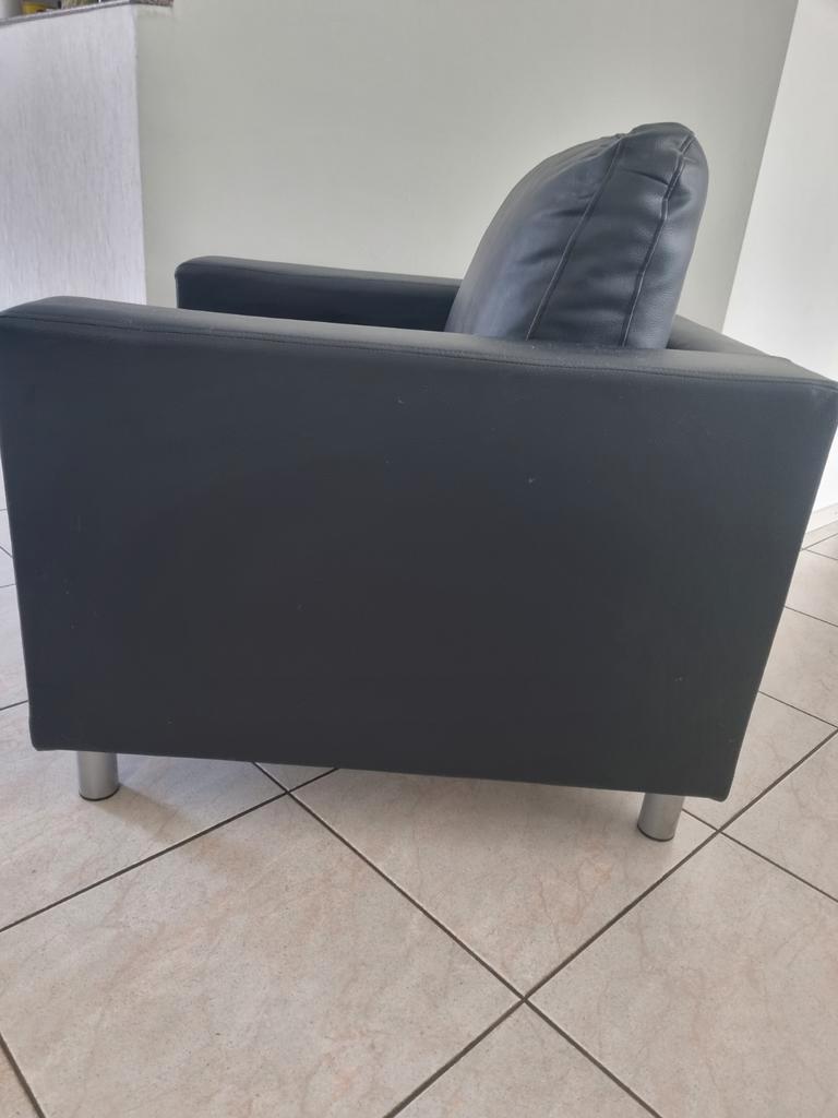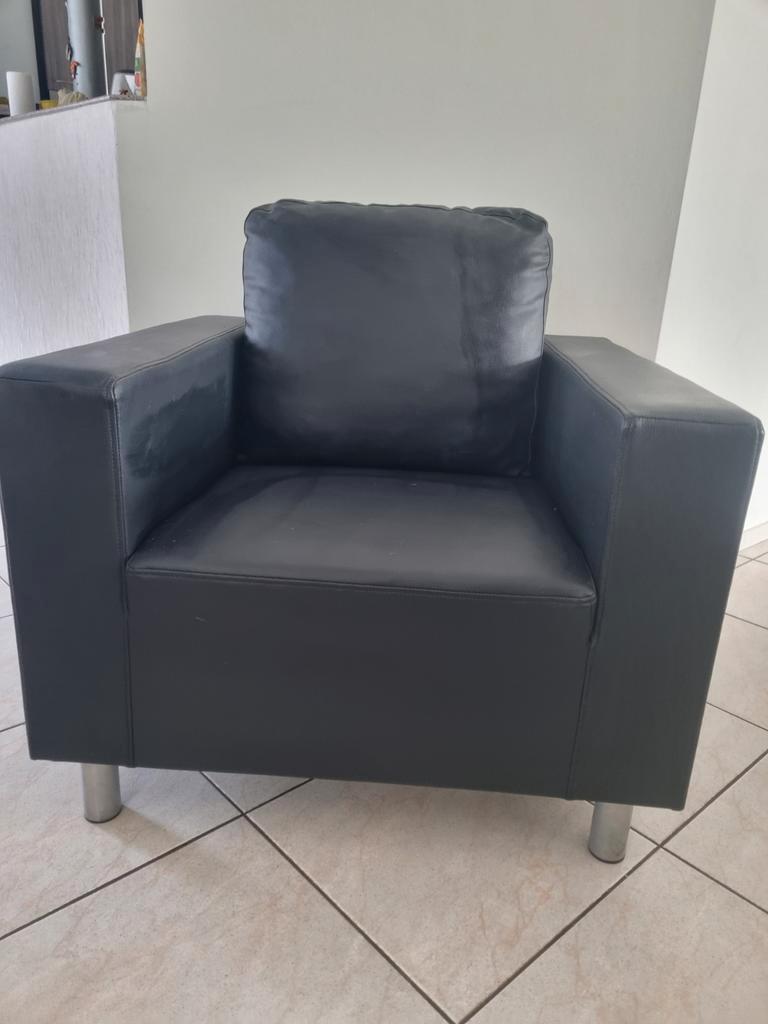 Zwarte relaxfauteuil, in goede staat, met los rugkussen. Afmeting b 87x87, h 63, zithoogte 42. Opruiming huis overleden moeder.