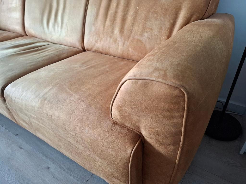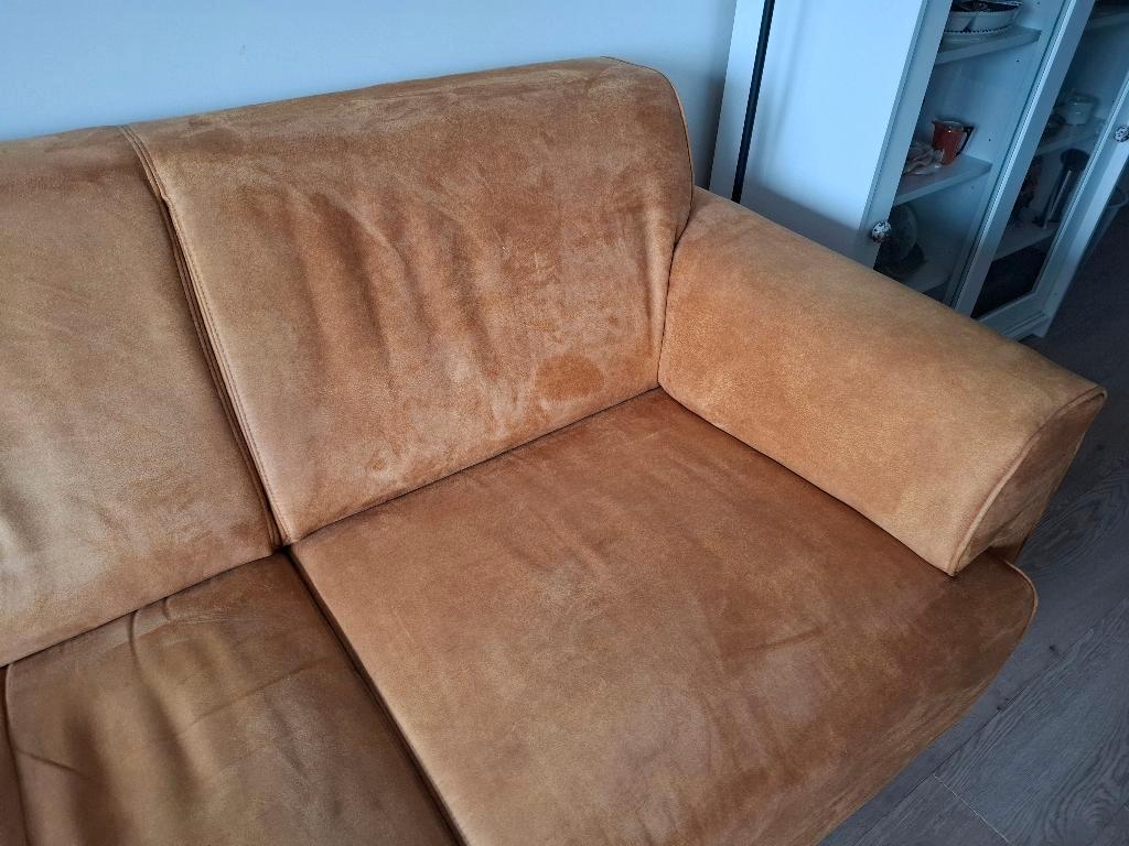 Deze bank mag gratis worden opgehaald. De bank is nog prima. Wij gaan een halfronde bank aanschaffen. Dit zijn twee tweezitters die aan elkaar vast zitten, maar wel los kunnen. Lengte inclusief armste