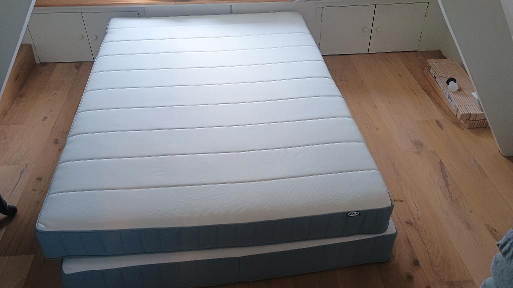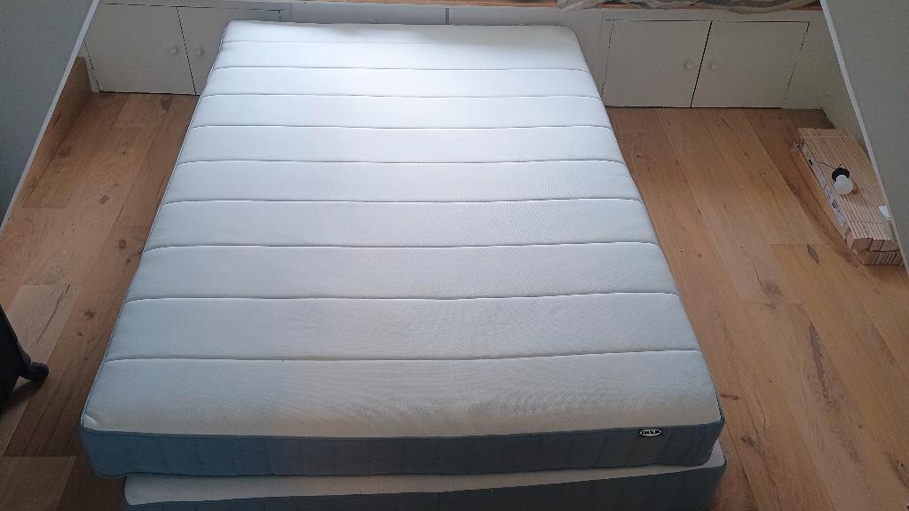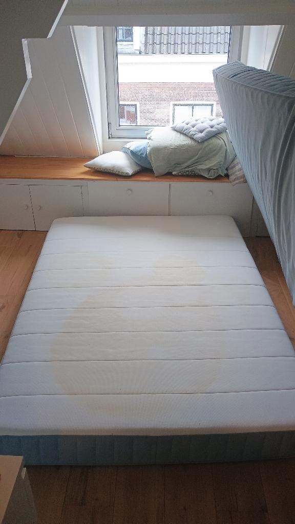 In verband met de aanschaf van een nieuw bed mogen deze twee matrassen gratis worden opgehaald. Details: aantal: 2 stuks. Afmeting: 140x200 cm (twijfelaar). Merk: ikea. Conditie: het ene matras is nog
